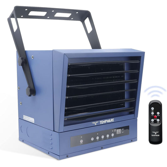 TEMPWARE Electric Garage Heater, 7500-Watt Digital Fan-Forced Ceiling Mount Shop Heater with Full-Function Remote, 240-Volt Hardwired 12-Hour Timer, Ideal for Workshop Blue