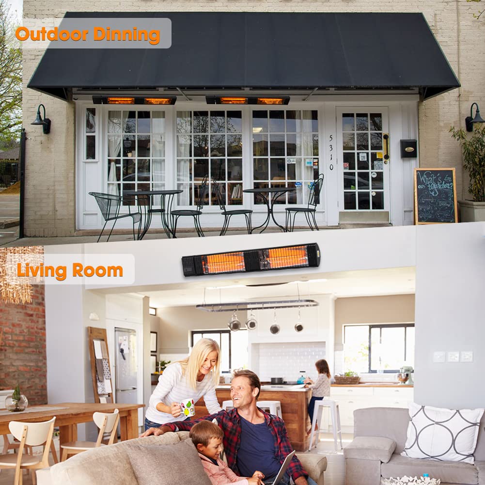 - 3 SECONDS INSTANT HEAT - This infrared patio heater with carbon fiber heating tube delivers instant powerful heat, only warming people and solid objects directly and unaffected by wind, providing you with maximum comfort for your winter activity outdoor, perfect addition to your patio, deck, garage or workspace